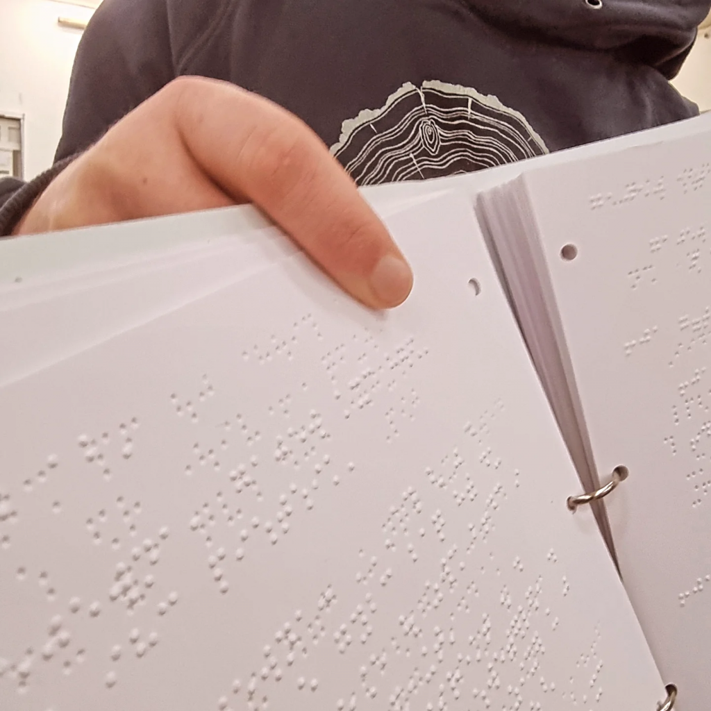 Die Brailleschrift, benannt nach ihrem Erfinder Louis Braille, ist ein taktiles Schriftsystem, das es blinden und stark sehbehinderten Menschen ermöglicht, Texte mit den Fingern zu lesen. Durch ertastbare Punktkombinationen werden Buchstaben, Zahlen und sogar musikalische Zeichen dargestellt. Sie ist bis heute eine zentrale Grundlage für selbstbestimmten Zugang zu Bildung, Kunst und Kultur und macht auch Theaterarbeit für alle erlebbar.
